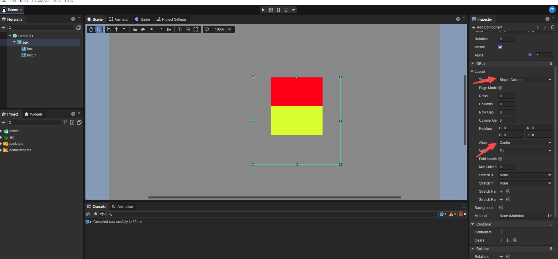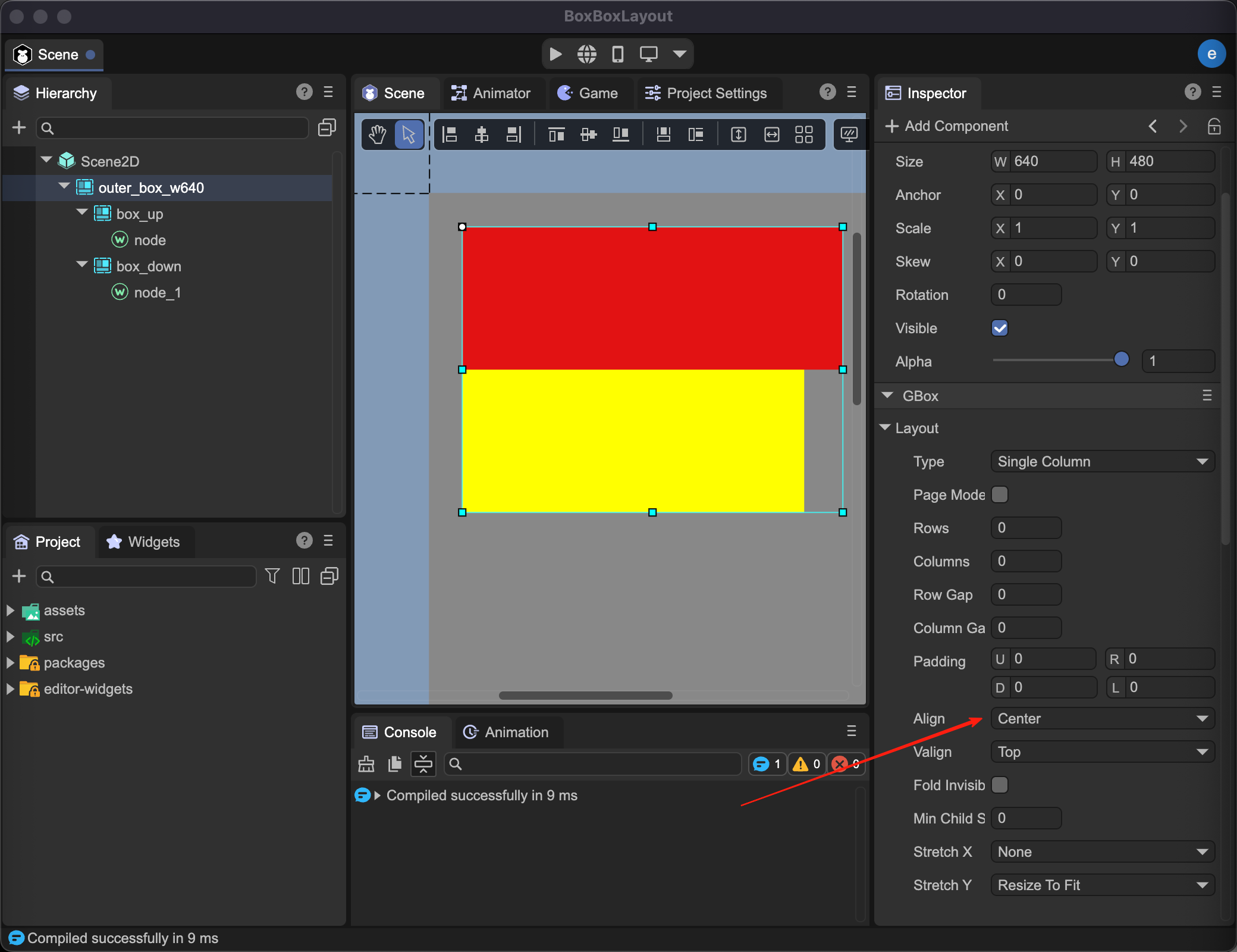 那么,你需要将黄色的box节点宽设置为最大,或所有子节点宽设置为相同大小。