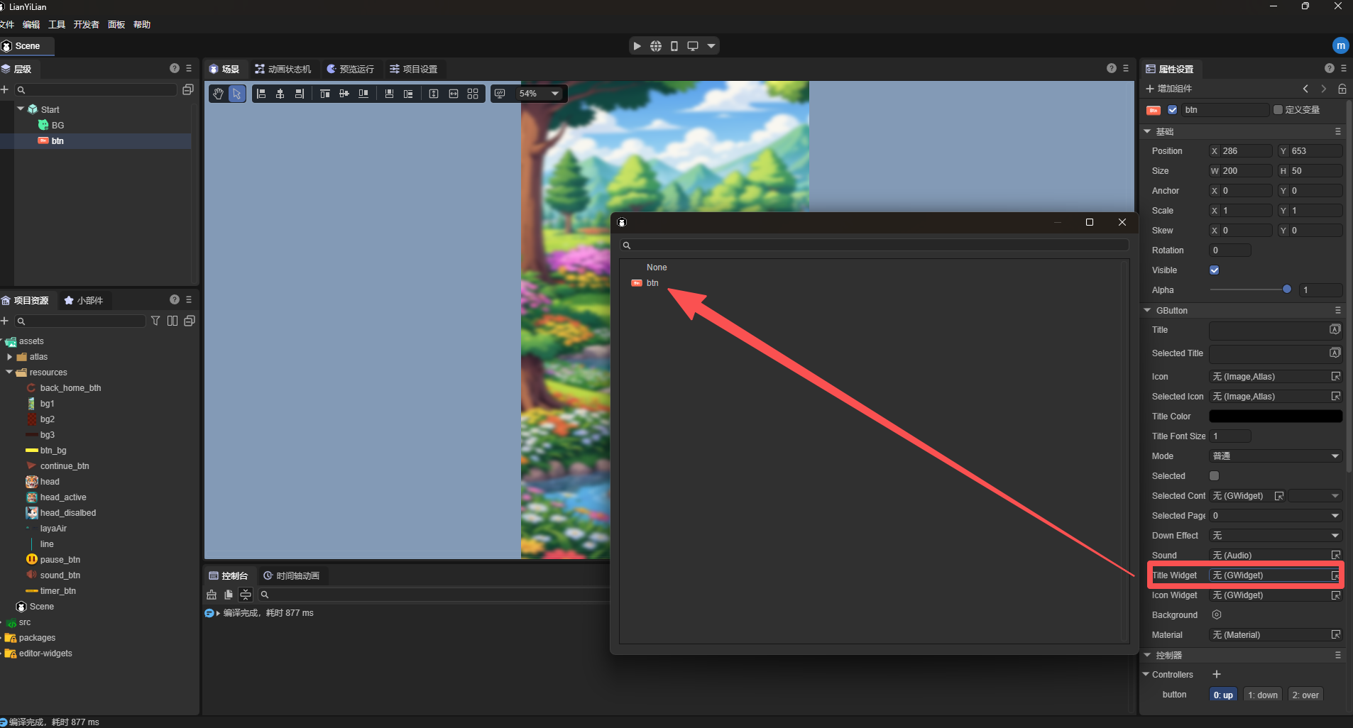 [LayaAir3]Gbutton设置TitleWidget误操作后编辑器卡死