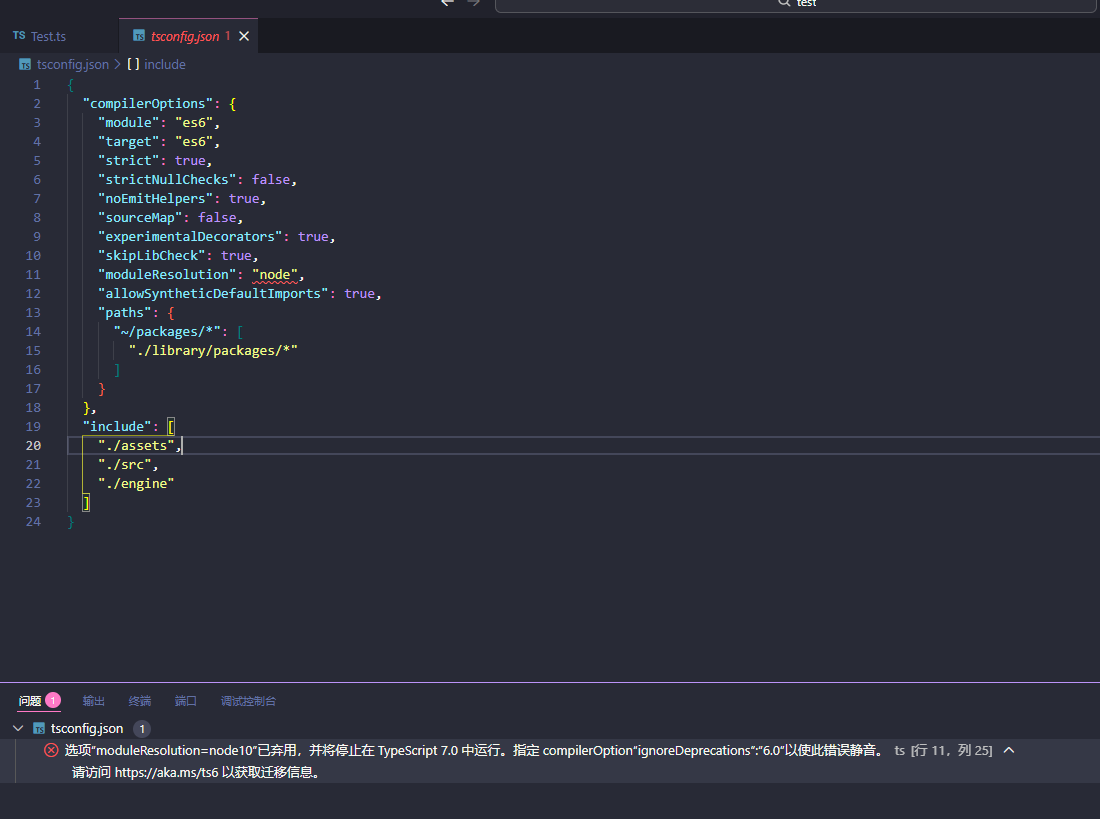 "message": "选项“moduleResolution=node10”已弃用,并将停止在 TypeScript 7.0 中运行。指定 compilerOption“ignoreDeprecations”:“6.0”以使此错误静音。\n 请访问 https://aka.ms/ts6 以获取迁移信息。",
