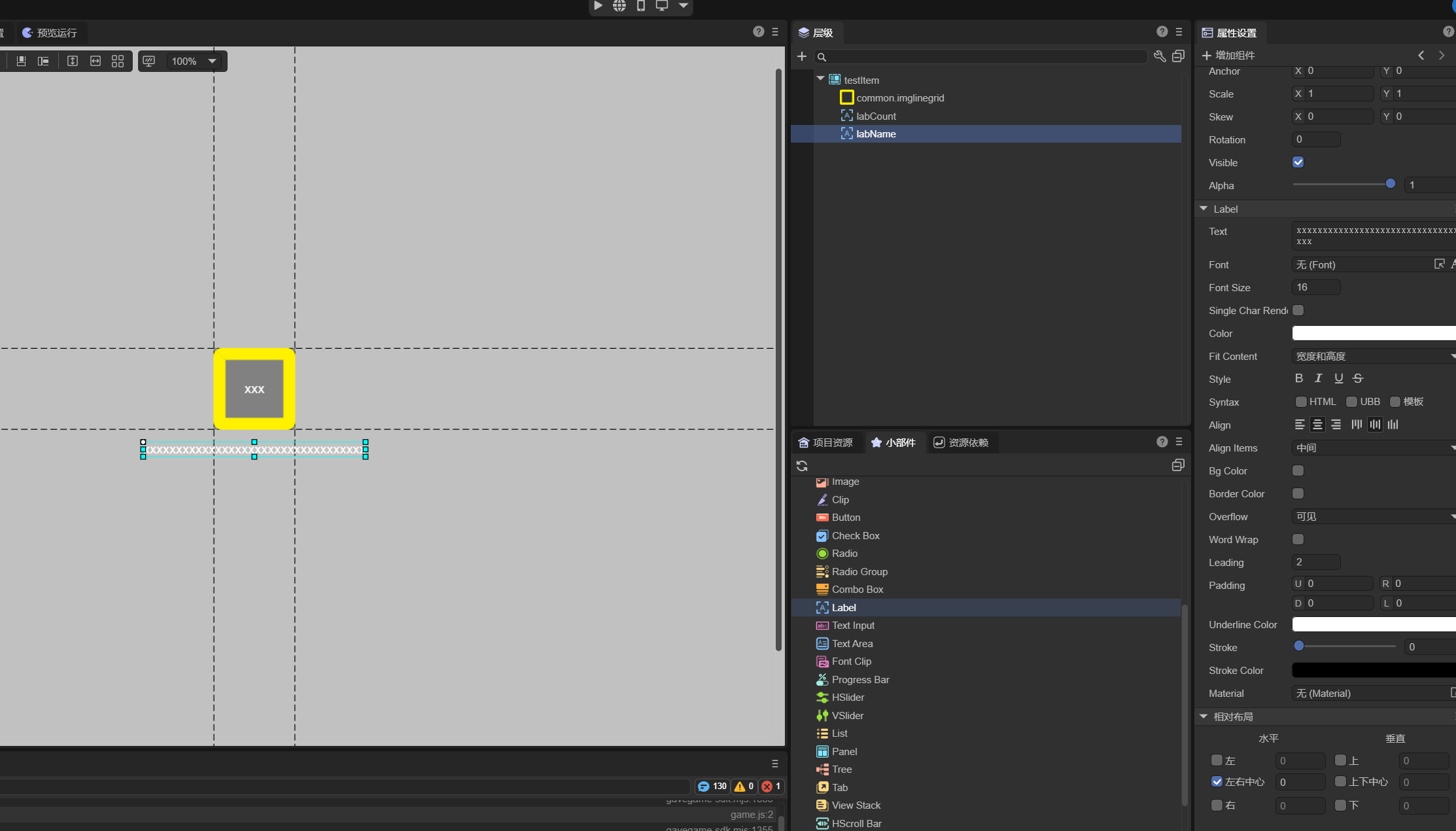 labName设置了文本xxxxxxxxxx,坐标居中,在代码处新赋值的文本坐标偏移,并没有居中,看附件的图