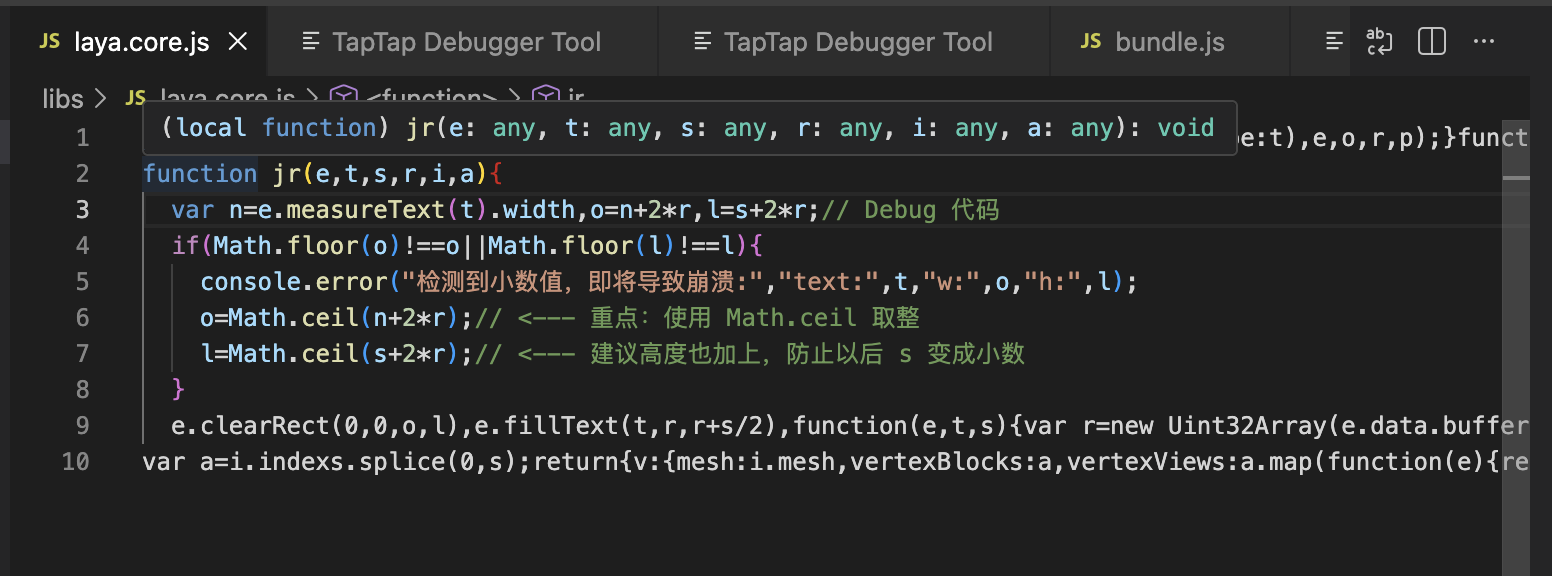 但是,在部分 Android 机型 或特定的 MiniGame 引擎(如TapTap底层的 V8 绑定) 中,如果传入的 sw 或 sh 是小数,底层 C++ 代码校验参数时会直接抛出 Invalid Argument 异常,要求必须是整数。