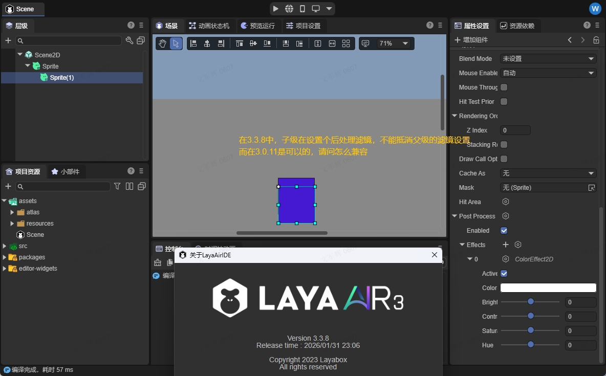 [LayaAir3]3.3后处理子级设置滤镜不能抵消父级的设置的滤镜